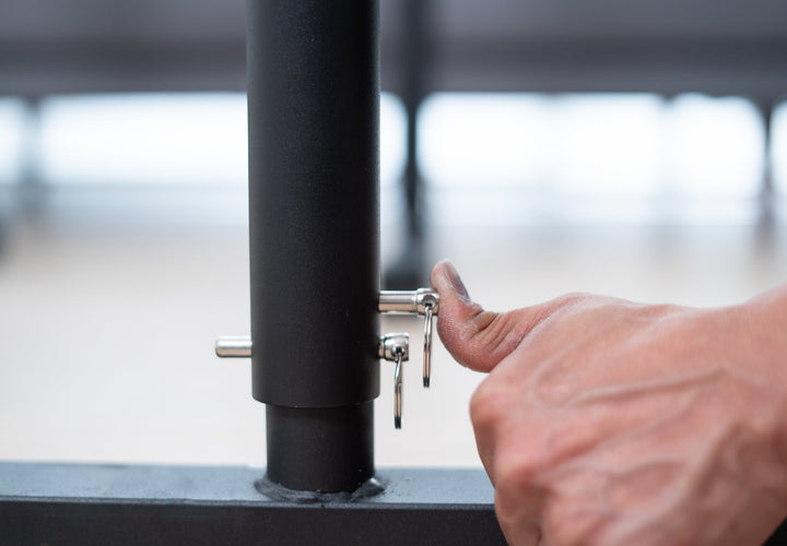Passe de 91 cm à 129 cm. Changez la hauteur en fonction de l'exercice. Le réglage de la barre haute est conçu pour les exercices suspendus.