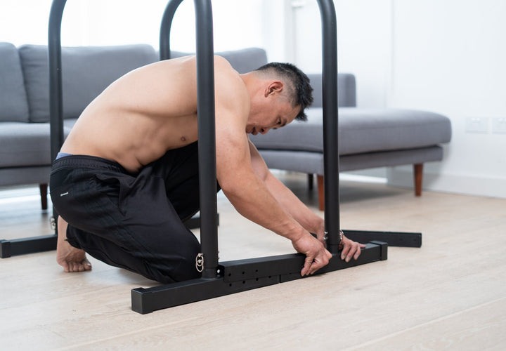 €289,00 Comparer à B-BARS PRORencontrez les B-Bars, nos barres parallèles conçues pour votre domicile. Renforcez le haut de votre corps et vos abdominaux avec des exercices au poids du corps. Effectuez des rows et des dips à la hauteur de 91 cm et des pull-ups à la hauteur de 129 cm. Installation facile et autonome - broches à dégagement rapide pour une installation rapide (pas de vis ni de boulons, et pas de fixation à des éléments extérieurs).