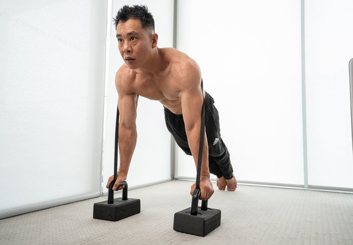 Les bandes utilisent le principe de la résistance accommodante ; elles augmentent la résistance aux parties de l'exercice où vous êtes plus fort. Diminuez la longueur de la bande pour augmenter la difficulté.