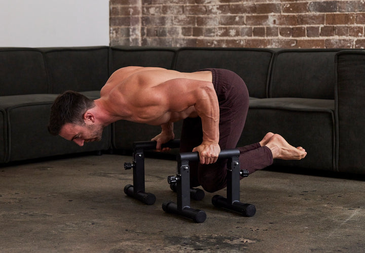 Utilisez les parallettes hautes et progressez vers les parallettes basses à mesure que votre niveau de force s'améliore.