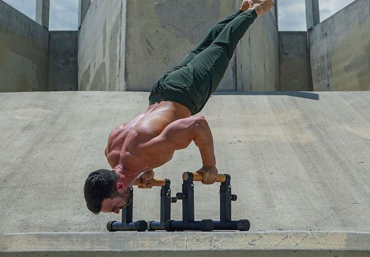 Utilisez les barres parallèles hautes pour obtenir une plus grande amplitude de mouvement sur des exercices comme les HSPU, et les barres parallèles basses pour maintenir une forme stricte sur des exercices statiques.