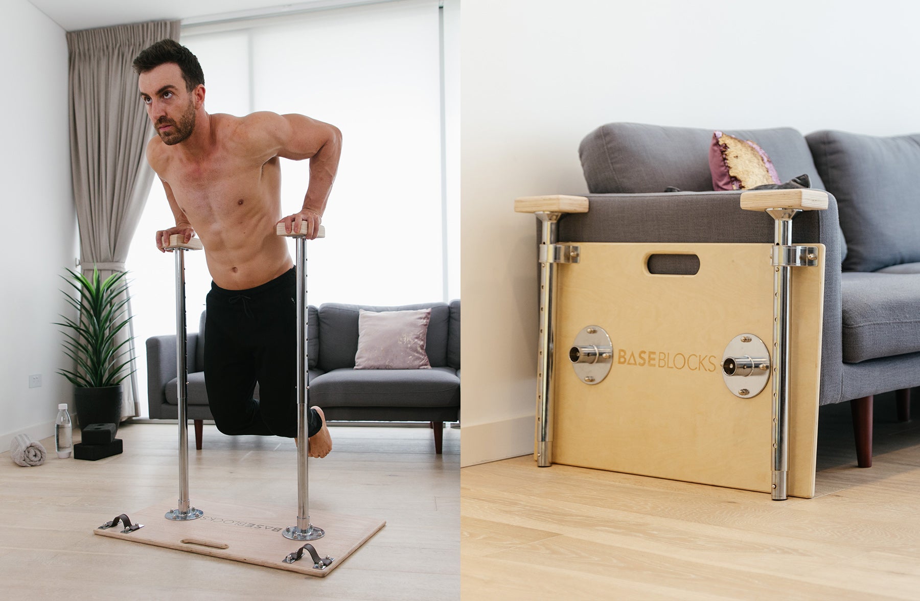 €199,00Découvrez le BaseBlocks Trainer. Inspiré des supports de handstand, le BaseBlocks Trainer permet aux utilisateurs d'effectuer des exercices de poussée, de traction, d'abdominaux et de jambes en utilisant uniquement leur poids corporel. Les montants sont réglables en hauteur et offrent une instabilité multidirectionnelle pour reproduire l'instabilité des anneaux de gymnastique, sollicitant vos stabilisateurs lors de chaque exercice. Effectuez des exercices comme des montées et des pompes à la hauteur la plus basse, et des rows et des dips à la hauteur la plus haute. Se glisse sous votre lit ou votre canapé pour le rangement et assemblé en quelques secondes.