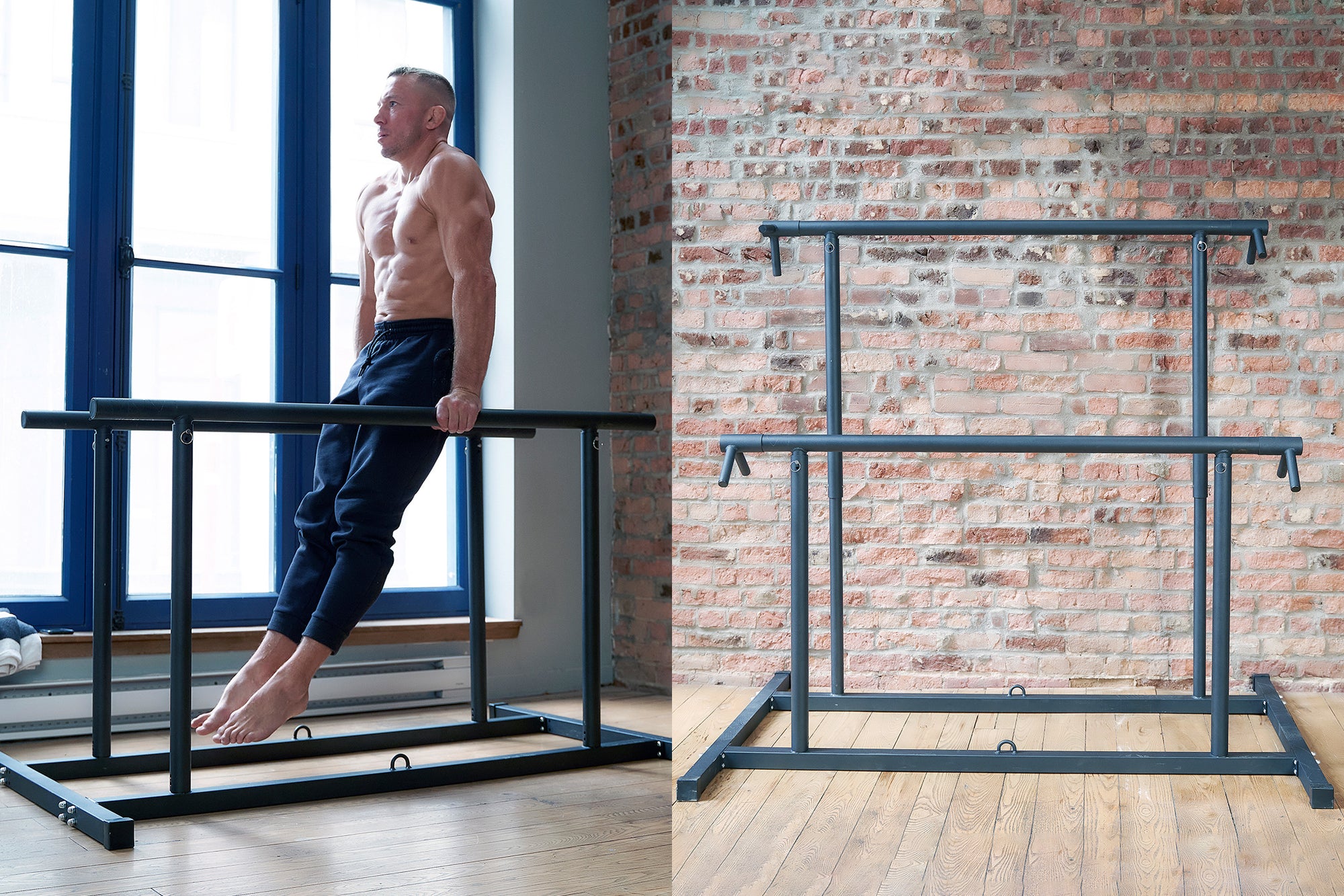 - Hauteurs : 95 cm (barres parallèles) et 150 cm (barres de traction)